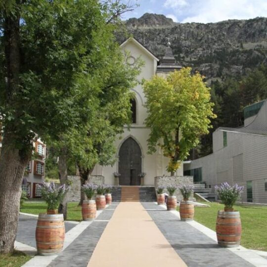 Nos casamos en la Iglesia de Nuestra Señora del Carmen, conocida como la Catedral del Pirineo y rodeados por los gigantes nevados del valle de Panticosa.